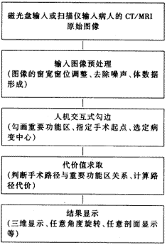 中国医疗器械杂志000101提 要:系统以病人的CT/MRI断层图像为依据,通过方便灵活的交互式勾边功能,使医生可以方便的勾画出感兴趣的区域,用快速的判别手段,给出路径的代价值,最后用灵活多样的显示手段,提供直接的路径三维显示。