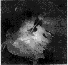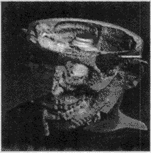 对手术方案的结果进行三维显示和多剖面显示是可视化的关键。系统考虑到各种显示方法的优缺点,对它们进行合理的运用和改进。对医生勾画的重要功能区采用面向多边形的表面显示算法,重建出的区域立体感强,图7是对医生勾画的眼球、视神经和脑干的重建结果。对于颅骨的显示,系统采用了直接投影的体显示法和改进的Marching Cube算法两种,后一种算法可弥补前一种算法对光照效果的过分依赖,而前一种算法则可弥补后一种算法过长的前处理时间的不足,供医生依情况选择,图8、图9为两种算法的显示结果。对于外皮肤的显示,系统综合利用面向多边形的显示方法和面向体素的表面显示方法,首先将构成外皮肤的所有像素自动提取出来,然后利用面向多边形的表面显示方法形成外皮肤,显示的图像比采用Marching Cube算法显示的更细腻、平滑,图10为显示结果。图11为一个复合显示结果。