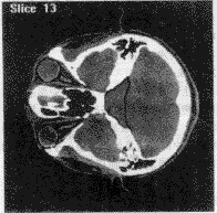 本文的试验以一位12岁男性的头部CT图像为研究对象。原始图像为93层的轴向断层图像,每层分辨率为256×256,象素间距为0.8mm,层厚1.5mm。以下依照各功能模块的顺序进行试验过程介绍,结果以图片显示。