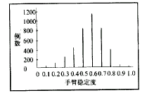 依据上述方法对5645例不同年龄的健康人群进行测试,检测结果所得手臂稳定度正常值见附表。其频率分布图的形状近似正态分布,这就验证了上述设计方法的正确性和合理性。