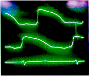 细胞电生理变化:经LIU消融60秒,心肌静息电位水平(RP -79±2.2 vs -70±3.2mV,p<0.05)明显提高;0相最大除极速度(Vmax 307±19 vs 240±26 V/s,p<0.01)及动作电位幅度(APA110±5.8 vs 92±6.6mV,p<0.05)明显降低。动作电位时程(APD 100 179±5.8 vs 189±10.8ms,p>0.05)有延长趋势,而以3相复极延长较为明显。HIU消融60秒后所有5例动物不能记录到跨膜动作电位而只能记录到心外膜心电图(图1)。