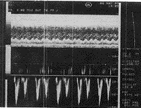 下图为心室壁运动的M型显示,扫描速度为50cm/s