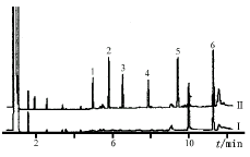 PE AutoSystem XL气相色谱仪,配FID检测器和毛细管色谱柱PE-5 (30 m×0.32 mm×0.25 μm);VG TRIO-1000型气相色谱质谱联用仪,配有HP-5毛细管色谱柱(25 m×0.32 mm×0.52 μm);真空固相萃取装置(Waters 公司)。