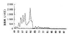图2 1949~1999年辽宁省麻疹发病率
