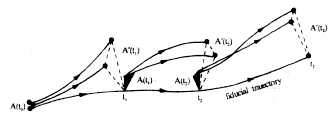 Fig 2 A schematic representation of the evolution and replacement procedure used to estimate Lyapunov exponents from the growth of area elements