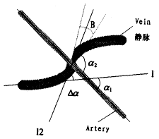 α2—动脉与静脉交叉角;Δα=α2-α1动静脉交叉角度改变量;B—静脉锥度