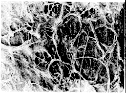 (2)控制人工真皮在体内的被吸收率及降解速率也是非常关键的。即人工真皮必须在移植后保持其网状结构一段时间,以支持组织细胞和血管的侵入。60年代曾有人用胶原替代骨移植,但因植入物很快被降解而达不到预期效果。我们制成的胶原+6-硫酸软骨素膜经戊二醛交联后,在体外胶原酶降解条件下,通过检测胶原降解的特有产物羟脯氨酸浓度,发现其降解速率得到明显控制。至于这种人工真皮在体内降解速率如何,尚待进一步研究。