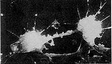 Fig 1 Phase contrast micrograph of a mineralized nodule 30 days in culture the nodule is opague and three-dimensional.×100
