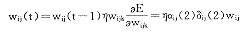 其中:δij为隐层反向误差传播函数。利用梯度下降法,导出一组模型参数,权矩阵Wijk的迭代[3]为