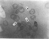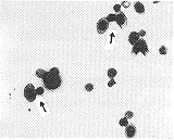 4.2 从图3(A)中可以明显看出细胞被台盼蓝部分染色。在正常情况下活细胞无法被染色,死细胞则全被染成蓝色,可断定台盼蓝是通过细胞膜上的孔进入,细胞仍存活。实验发现台盼蓝的透入率与处理时间成正比,平均为18%,而对照组只有2.5%。图3(B)中的黑色小颗粒是进入细胞内的3H发出的β射线使乳胶感光而成的。由于人血红细胞无核,细胞内不含DNA物质,故可判断小颗粒是由电穿孔进入细胞的,而正常情况下它无法进入细胞。实验中还发现照射组的细胞体积明显比对照组大,并有部分细胞变形,有刺突出现。