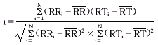 2.3.1 时域相关[9,11] 计算RTm与RR间期的相关系数,相关系数r是表示两个变量间线性关系的密切程度的统计指标。