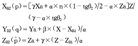其中:α=(XB1(p)-Xa)/d;β=(YB1(q)-Ya)/d;γ=(ZB1(p)-Za)/d;Ya=k,d为B1与A点之间的三维欧氏距离。联立求解式(3)与原始图像2的空间位置关系式(4),可求取B2(XB2(p),YB2(q),ZB2(p))的三维坐标。
