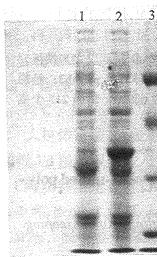 1:Non-inducedpWR450-1/JM109;2:pWR450-1/JM109inducedwithIPTG;3:Proteinmarker;
