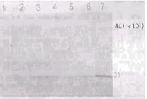 Fig 2 Analysis of soluble ScFvs from different sites by Western blot using anti-tag E 1:E.coli HB2151; 2:Intracellular soluble antibody of PF184;3: Periplasmic soluble antibody of PF184; 4: Soluble antibody in supernatant of PF184; 5:Intracellular soluble antibody of PF22; 6: Periplasmic soluble antibody of PF22; 7: Soluble antibody in supernatant of PF22.