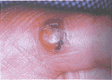 患者女,39岁。因左拇指皮损2周,双手、前臂皮疹1d于1999年5月10日来我科就诊。患者从 事挤奶工作,约1个月前发现一奶牛乳房有红色皮疹,未加注意。2周前发现左拇指皮肤出现 一绿豆大小紫红色皮疹,微痒不痛,渐增大至指甲盖大小。于当地医院手术切开引流,无好 转。1d前双手突然出现多数红色皮疹,痒,迅速延及前臂。既往体健。