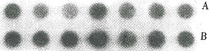 图4 PDGF-AAmRNA斑点杂交图(A:10 μl,B:20 μl)