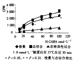 反应条件:1.0 g.L-1脑蛋白与30 nmol.L-1 3H-GABA在37℃