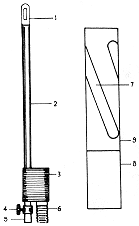 1.外刀 2.外管 3.手柄 4.阀门 5.硅胶管 6.软轴 7.内刀孔 8.内管 9内刀(放大)