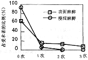 据药理分析,地卡因具有良好的表面穿透能力,作用迅速,一般1~3分钟产生麻醉效果,可持续20~40分钟[2]。制成5 %地卡因表面麻醉剂用于睑缘文刺,效果明显,所行60例手术全部成功。其中约64 %受术者术前麻醉1次即可完成手术,少数痛阈低者可在手术过程中追加麻醉1~3次,需涂抹3次者仅占8 %(图3)。操作简便,并不延长手术过程。浸润麻醉法术中可能会出现眼睑皮下出血和注射针孔色素渗入等症状,前者在我们的统计中约占14 %,后者占 6 %,比例虽然不高,且前者一般在几天内都能自动吸收,但后者却较难消除。