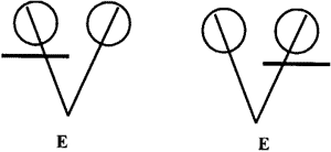 病人A能双眼注视视标E,病人B只能用右眼注视视标E,其左眼内转。在作遮盖——遮盖试验时,我们将遮盖片放在病人的右眼前,观察病人的左眼,病人A左眼已经在注视视标,所以左眼无移动;而病人B在双眼睁开时左眼没有注视视标,当右眼被遮盖时,左眼移动,注视视标,将视标像落在黄斑部,不移动的话,视标像落在鼻侧视网膜上就会使视力不好。