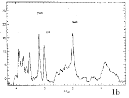 近年来对于脑的质子频谱(1HMRS)给予了 很大兴趣,特别是在很小的区域就得到高分辨率的频谱,所用时间很短,作频谱的各个步骤 都是机器自动操作。1H的敏感性较高,它有高的旋磁比,代谢产物浓度高,较适宜的弛豫时 间。