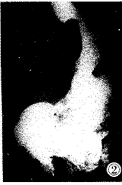 胃肠张力降低:器官失去原有的紧张性而呈中度扩张的无力松弛形状,类似无力型胃但 其轮廓的柔顺性较差,我们称之为“旧橡皮袋”(62/80,图1)。