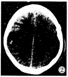 颅脑CT平扫:右侧颞顶叶见5cm×5cm×6cm圆形混杂密度影,周边轻 度水肿,左额叶见1cm×1cm×1cm圆形稍高密度影,周边轻度水肿(图1,2)。