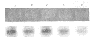 1.4 EDAG-1 cDNA探针的制备 采用随机引物标记法。DNA模板25 ng,加入10 μl标记5×buffer, 3 mol*L-1 dGTP、dTTP 、dCTP混合液各2 μl, BSA 2 μl, DNA多聚酶5U及α-32P-dATP 5 μl,反应体积50 μl,室温1 h后终止反应并用Sephdex G-50柱纯化探针。