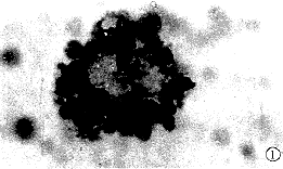 图6 发生核碎裂的凋亡细胞和被吞噬的凋亡小体(亮荧光)ISEL×500