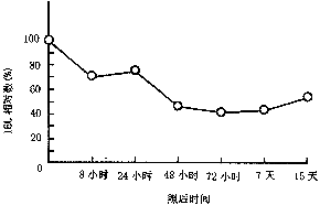 8Gy全身辐射后小鼠小肠粘膜IEL计数呈明显的下降趋势(见附图)。照后8小时即下降,72小时达最低值,为正常对照值的41.18%(P<0.01),IEL计数在观察的15天内呈持续下降状态。