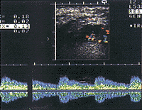 仪器采用Aloka SSD-650和Aloka SSD-1200型超声仪,7.5MHz线阵探头以及Acuson 128 XP/10型彩超仪,5MHz线阵探头。