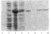 4, sonicated supernatant; 5, inclusion body; 7,8, renatured fusion protein.