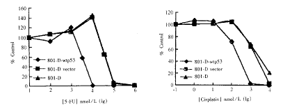 Fig 2 Transfection of wtp53 increased the sensitivity of 801-D cells line to 5-FU and cisplatin