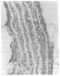 Fig.3 S-P stain of actin in aorta from diab etic rat(LM×400)