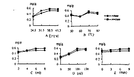 (A:压力;B:温度;C:改性剂量;D:动态萃取体;E:静态萃取时间)