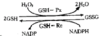 已知BCG+LPS所致肝损伤的机制为巨噬细胞(Mφ)介导的免疫性肝损伤,激活的Mφ释放多种免疫效应分子如活性氮 、活性氧和细胞因子等[3,10],最终都导致组织严重的过氧化损伤,本实验显示该模型肝细胞浆脂质过氧化产物MDA明显升高,证明肝细胞内脂质过氧化是本模型的重要终末肝损伤机制。谷胱甘肽相关酶在机体清除过氧化产物的过程中起重要作用,如下所示: