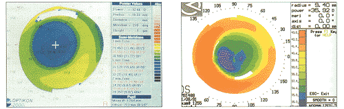 , 百拇医药 图1 理想的术后角膜地形图 图2 定为倾斜PPK术后的角膜地形图
