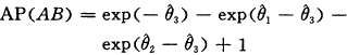 AP(AB)=exp(-2.201)-exp(1.204-2.201)-exp(1.086-2.201)+1=0.41