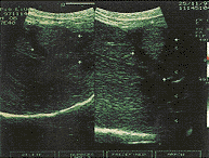 作者认为:彩超以其实用、经济、方便、可靠等特点将成为HIFU疗效检测的有用工具。且彩超判别HIFU疗效的标准可归纳为两点:①HIFU治疗前后靶区组织内回声明显不同(均匀回声变为强回声或低回声或强弱不等);②治疗后靶区内原有Doppler血流消失。在HIFU治疗中,彩超可做为一种常规监测手段,必要时可配合CT或MRI。