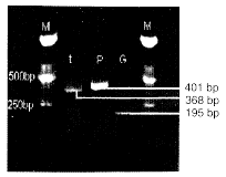 (扩增产物分子量大小分别为368,401,195 bp)