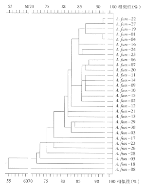 的RAPD带型菌株间平均相似性聚类分析树状图