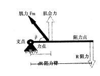 锁骨骨折是常见的骨折之一,由于其解剖及生物力学方面的特殊性,给临床治疗带来了一定的困难。锁骨为位于胸部前上方,呈“~”形弯曲的长骨,无骨髓腔,外侧端粗糙而扁宽,末端有卵圆形关节面与肩胛峰端相连接;中间呈圆柱形且最窄,又是向后弯曲段,是力学上的薄弱段;内侧段最为粗大,近似三棱形,与胸骨相连接[2]。它桥架于胸骨与肩峰之间,是肩胛带与躯干的唯一骨性连接;可以沿自己的额状轴作升降运动,垂直轴作前后运动,还可以按其轴心作旋转运动(图1)。因此,可以把锁骨的运动简化成是以胸锁关节为支点的骨杠杆运动(图2)。据物理学中杠杆平衡原理,凡是一根杠杆要使其对支点保持转动平衡,则必须使其动力矩等于它的阻力矩,也即作用在杠杆上的各力对支点的矩应等于零。在骨杠杆力系内,为使骨杠杆平衡,必须使肌力矩等于阻力矩,即M(肌力矩)=MR(阻力矩)。由于肌力矩M等于肌力Fm与肌力臂d的乘积(即M=Fm×d),阻力矩MR等于阻力R与阻力臂dR的乘积(即MR=R×dR)。因此,Fm×d=R×dR,即Fm/R=dR/d),该Fm(肌力)可以看作是对抗上肢阻力所需的力量;它主要由胸锁乳突肌、斜方肌上部纤维、肩胛提肌、菱形肌等形成,合力方向朝后上方;R(阻力)可以看成是上肢的重力及附着于锁骨下方的肌肉如胸大肌、锁骨下肌、肩胛后下方肌群等形成的,阻力方向朝下。按照人体各环节相对重量整数百分比提示,上肢总比例数为6。若按照一个成人体重为60kg计算,其一侧上肢总的阻力