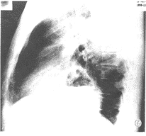 嵌入性食管裂孔疝的症状多较轻微,不具特异性,缺乏 任何相关主诉,由于一般情况良好,故临床常误诊或漏诊,本 组中有5例是创伤后作正位胸片检查发现心后影内分隔的大小 不等囊气腔,急诊手术证实左上腹部分胃、结肠、网膜、小肠 疝入膈上,压迫肺组织。