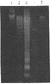 5 DNA电泳 按常规方法提取DNA,溶于30μl 上样缓冲液,15g/L琼脂糖凝胶(含0.5μg/ml 溴化乙锭),50V,电泳4h,紫外灯下照相。