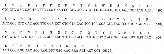 图4 人抗体Fd段基因的核苷酸序列及其推导的氨基酸序列