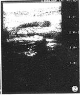 依据斑块的物理特征分为:①软斑:斑块突出于管腔内,呈均匀低回声或混合性回声。表面有连续的回声轮廓及光滑的纤维帽(图1)。②硬斑:斑块回声增强,可伴有明显声影(图2)。③溃疡斑:斑块呈混合性回声,表面不平滑,有“壁龛”样影像。