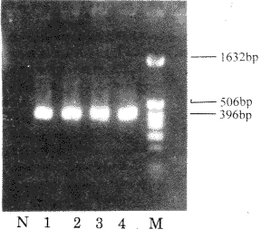 N:阴性对照1—4:1株扩增结果