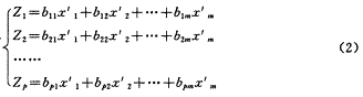 主成分分析的目的是用较少的综合指标Zi(i=1,2,…,p,p≤m)反映m个原指标xj(j=1,2,…,m)所包含的信息,实际就是建立用标准化指标xj表示的综合指标Zi的方程: