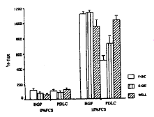 笔者的结果表明,PDLC在GIC上的附着明显少于HGF,说明在早期仅有部分PDLC在GIC上附着。Isidor等人认为在牙周愈合过程中,除了PDLC的移动、附着外,PDLC的增殖、分化也是非常重要的一步[8]。笔者研究表明,在缺乏FCS时,HGF及PDLC的DNA合成最少,在加入10%FCS后,DNA合成均明显增加,但二种细胞在GIC上生长时,HGF的DNA合成明显多于PDLC,进一步说明二种GIC均不抑制HGF的增殖、分化[7],但却部分抑制了PDLC的增殖、分化。
