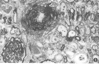 结节性多动脉炎(PAN)属于累及多器官中、小血管的原发性血管炎,各器官中等动脉炎症致狭窄及阻塞而引起相应脏器缺血、坏死、功能障碍。典型结节性多动脉炎(CPA)以肾为最常见的受累器官,见于70%~80%的病人,主要是叶间及弓状动脉的血管壁坏死性炎症,严重者动脉壁全层纤维素样坏死,可有动脉瘤、动脉血栓形成造成缺血、梗死,表现为肾动脉、叶间动脉及小叶间动脉的血管壁水肿,黏液变性、WBC浸润、纤维素样坏死、弹力纤维断裂和血栓形成,肾实质可见新旧不等的梗死病灶。静止修复期的动脉壁显示结缔组织增生,血管周围有单核巨噬细胞、淋巴样细胞及白细胞浸润。此病可有不规则发热、乏力、体重下降、肌痛、关节痛、多形性大片状皮疹等表现。化验可见血沉快、CRP增高、IgG增高,C3一般无改变,血清乙肝病毒标志物检出率为6%~54%。ANCA多阴性。PAN累及脏器的顺序依次为:肾脏、心脏、消化道、皮肤及中枢神经系统。美国风湿病学会1990年制定的本病的诊断标准,关键在于血管造影及动脉活检。治疗应加用激素及细胞毒类药物。细胞毒类药物可提高病人存活率。病理改变重者(如纤维素样坏死)应予激素冲击治疗。病因如为乙型肝炎病毒,可试用抗病毒治疗,如α-干扰素等。